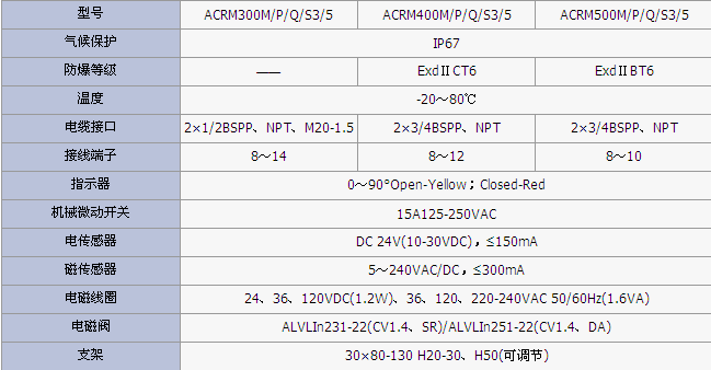 產品簡介:型號ACRM300M/P/Q/S3/5ACRM400M/P/Q/S3/5ACRM500M/P/Q/S3/5氣候保護IP67防爆等級&mdash...